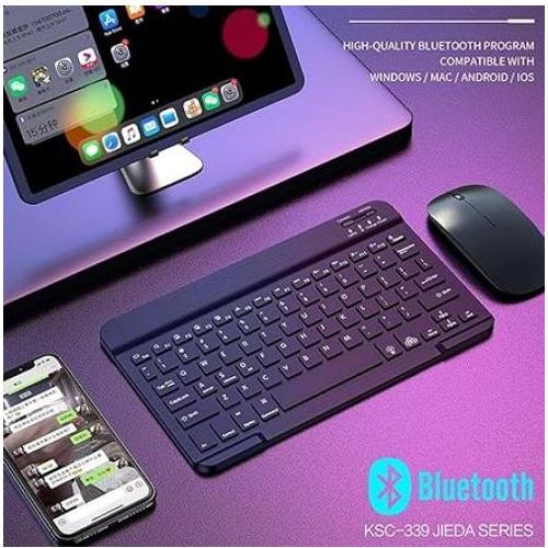 Clavier sans fil Kaku Excellente compatibilité : le clavier Bluetooth est compatible avec les systèmes iOS, Android et Windows. Il est parfaitement compatible avec tous les téléphones intelligents Apple iPhone, iPad, iPad Mini, iPad Pro, iPad Air, tablette Android Samsung LG, tablette Windows et autres appareils compatibles Bluetooth. La distance de transmission Bluetooth peut atteindre 10 m. Léger, portable et compact : ce clavier est beaucoup plus léger, plus petit qu'un clavier traditionnel. Vous pouvez facilement le transporter sans prendre plus de place sur votre bureau ou votre sac. Dimensions du clavier 7 pouces : 20 x 12,5 x 0,6 cm, poids : 128 g. 【Taille : 7,87 x 4,92 x 0,24 pouces, poids : 4,52 onces】